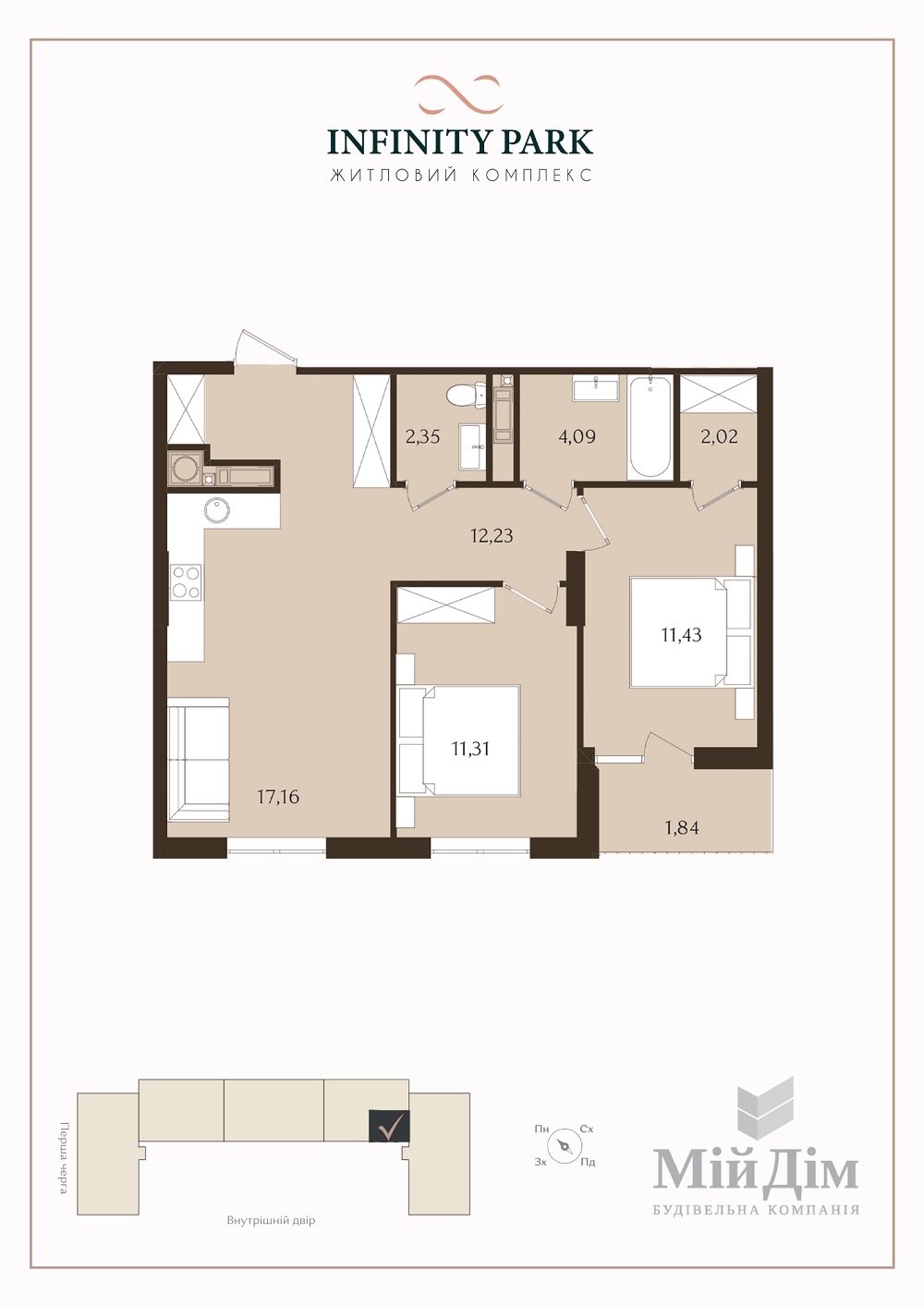 Секція 2.4 - Квартира: 62.43 м²