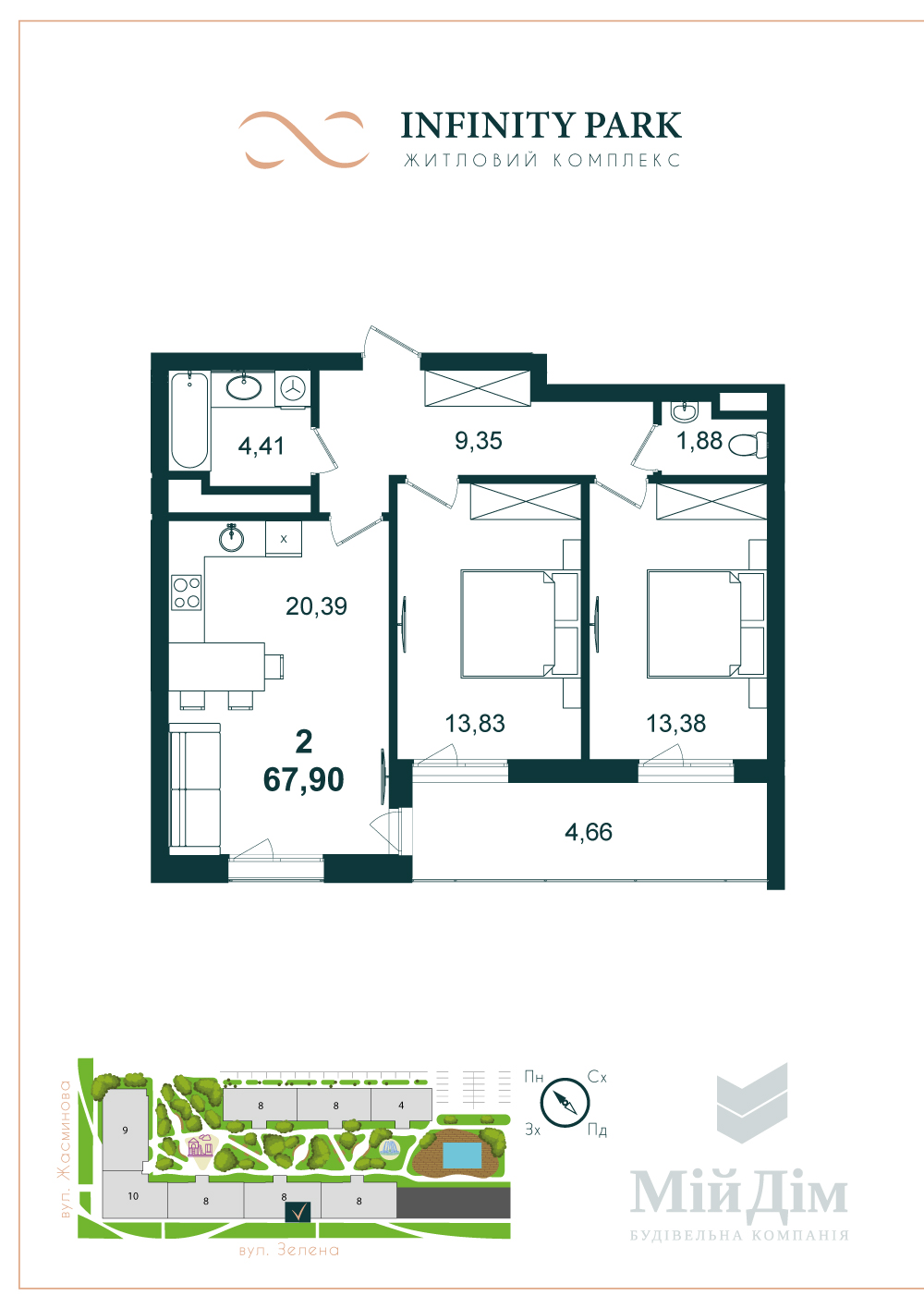 Планування 2-кімнатної квартири 67.93 м²