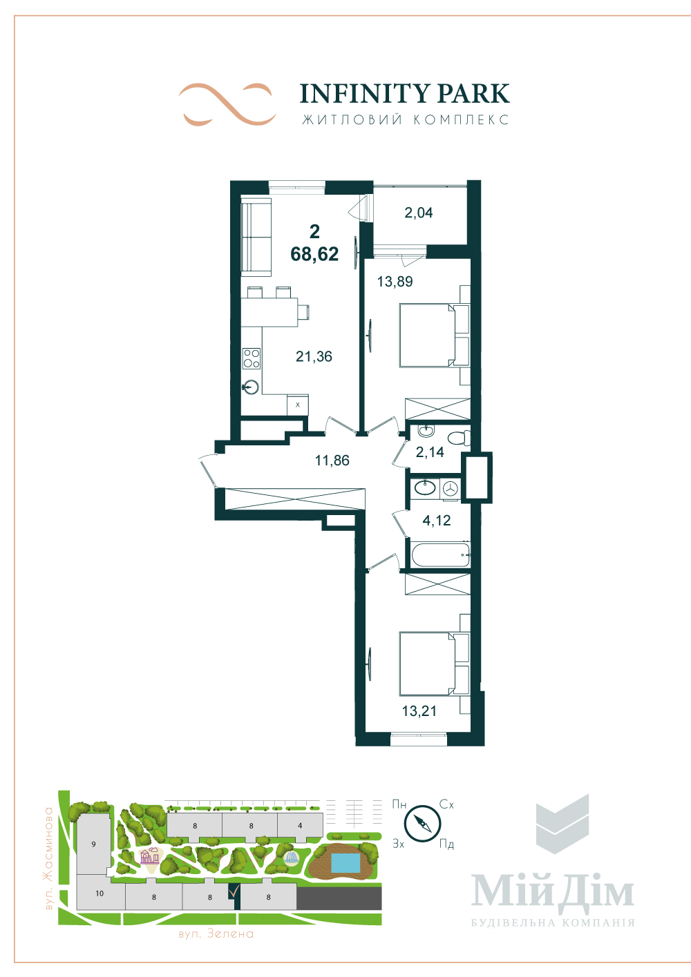 Секція 2 - Квартира: 68.62 м²